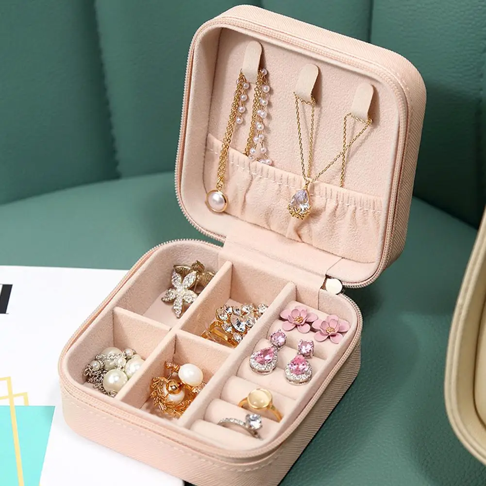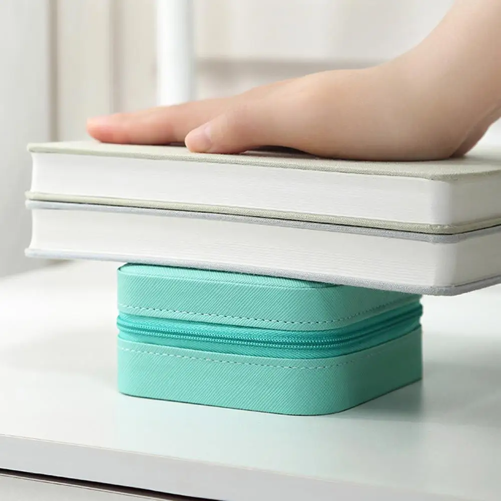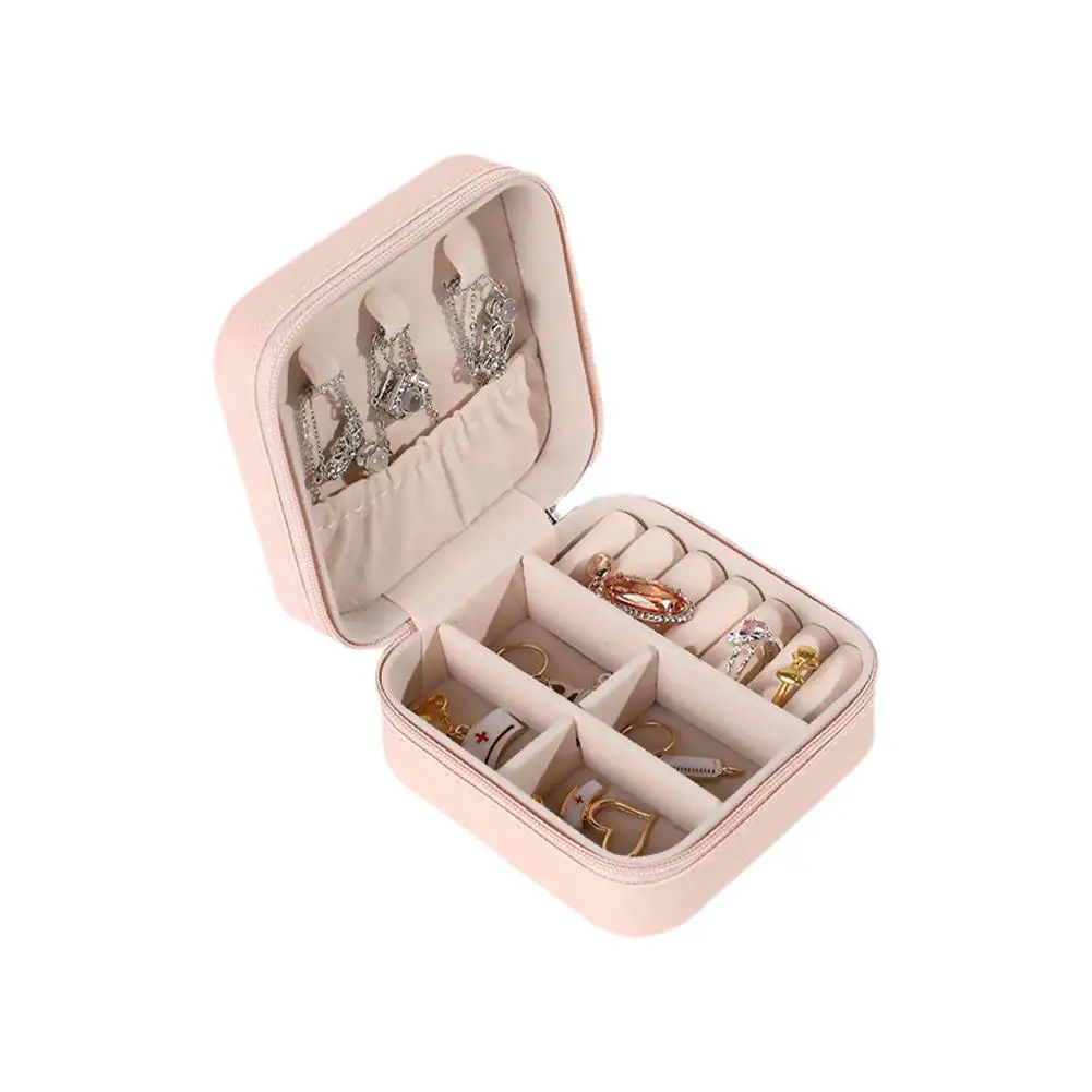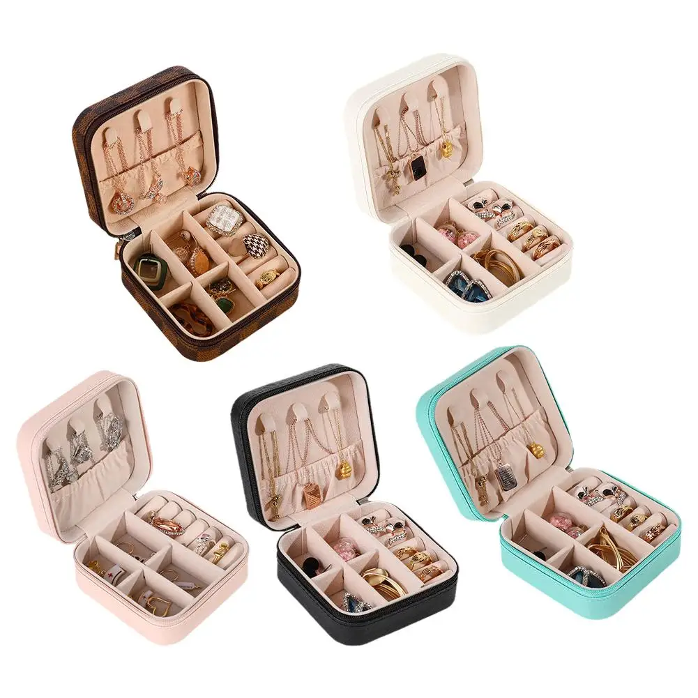 3. Compacto e portátil: Apesar de sua capacidade de armazenamento espaçosa, esta caixa de jóias é projetada para ser compacta e portátil. É leve e fácil de transportar, tornando-o conveniente para viagens ou simplesmente para levar com você onde quer que vá. Agora você pode manter suas jóias seguras e protegidas, mesmo quando você está em movimento.