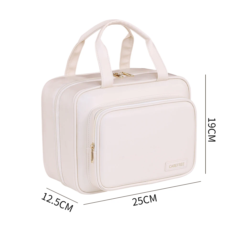 Apesar da grande capacidade, esta bolsa de maquiagem mantém um tamanho compacto, facilitando o armazenamento na bagagem ou na bolsa.