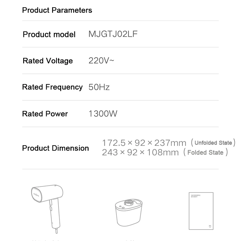 Mijia HandheldGarment Steamer 2 X 1/Tanque de água X 1/Manual do usuário X 1