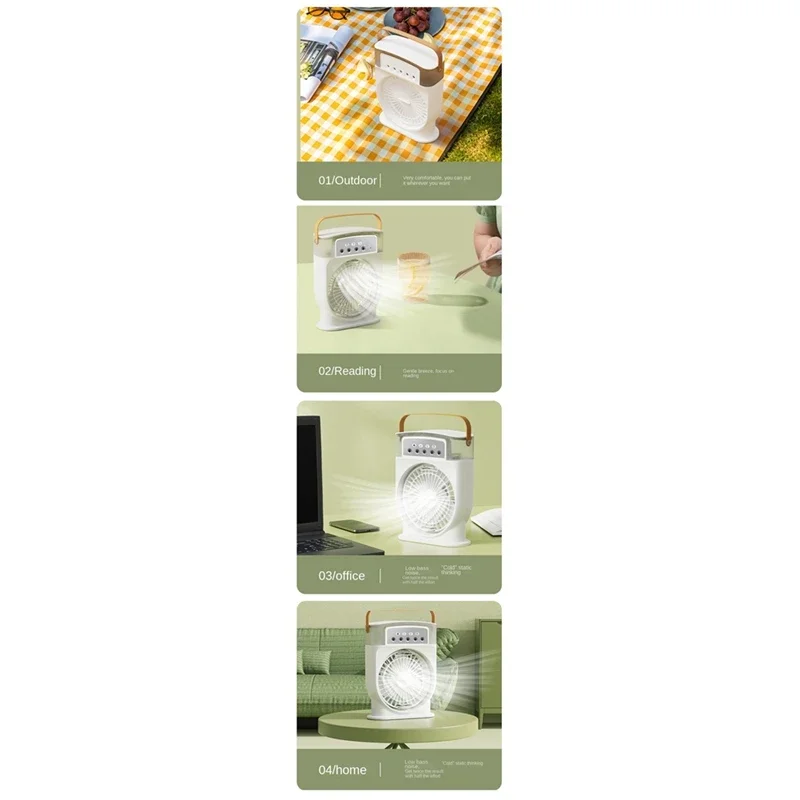 O tanque de armazenamento de água de grande capacidade está no topo, abra a tampa superior para adicionar água ou adicione cubos de gelo, o efeito de resfriamento é melhor!